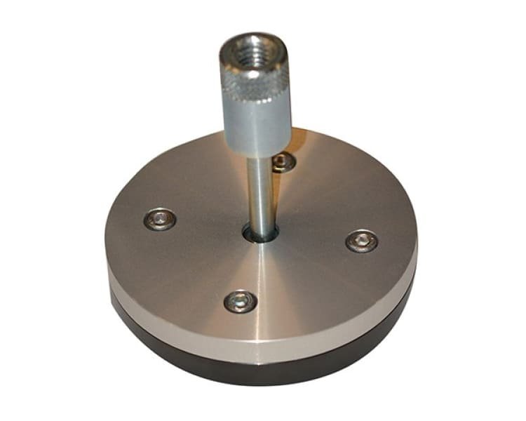 Lempeng uji ini menggunakan sekrup mounting berbentuk bola (ball-socket), agar plat atas dan bawah tetap sejajar dan tegak lurus terhadap gaya yang diterapkan. Hal ini menjamin hasil pengukuran yang konsisten dan akurat.