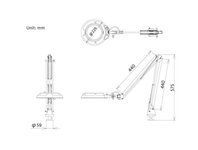 Desain pencahayaan ramping: head tipis dengan diffuser untuk mengurangi glare LED, digabungkan dengan arm yang fleksibel dan footprint kecil. Cocok untuk laboratorium kualitas, lini produksi atau pengendalian visual, di mana pencahayaan dan stabilitas adalah kunci.