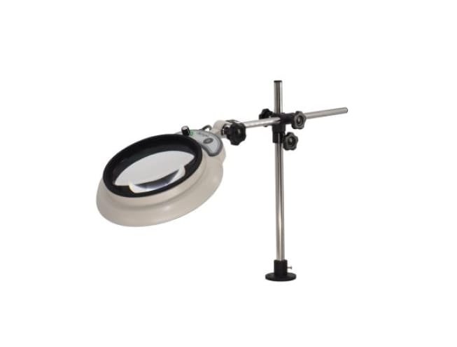 Model MGL-D hadir dengan basis penyangga jenis flange yang dapat dikencangkan langsung ke meja kerja, memberikan kestabilan optimal saat pemeriksaan detail. Didukung dimming menyeluruh serta catu daya AC 100-240 V.