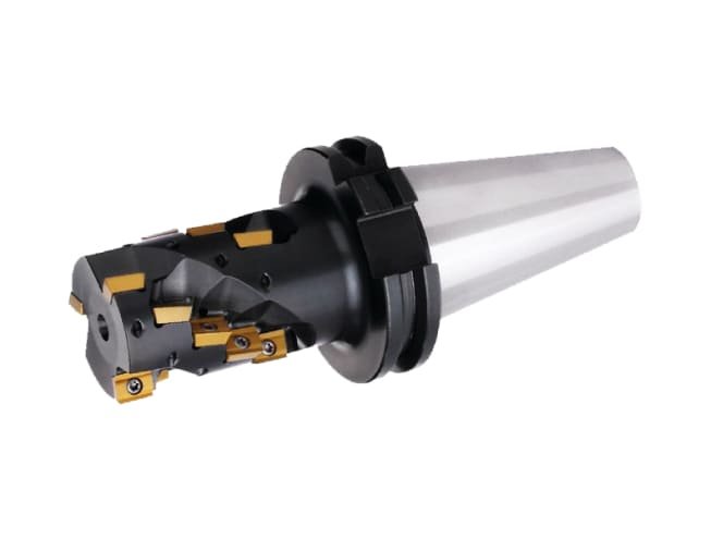 Bentuk spiral (helical) pada alat membantu penghilangan cip yang lebih efisien dan mengurangi beban pemotongan; tool-body modular memungkinkan adaptasi ukuran dan konfigurasi insert.