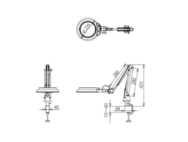 Tipe “Compact Free Arm” ini dapat diklem ke meja dengan rentang 10–60 mm, serta tinggi keseluruhan hanya 680 mm, cocok untuk lingkungan kerja dengan ruang terbatas tanpa mengorbankan bidang pandang atau kualitas pencahayaan.