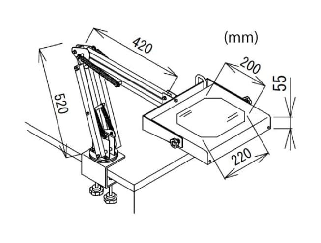 Dengan lengan arm sepanjang 800 mm dan mekanisme penjepit meja yang fleksibel (rentang penjepit 0–70 mm), LED WIDE-4 memudahkan pengaturan posisi lensa secara ergonomis di lingkungan produksi maupun laboratorium.